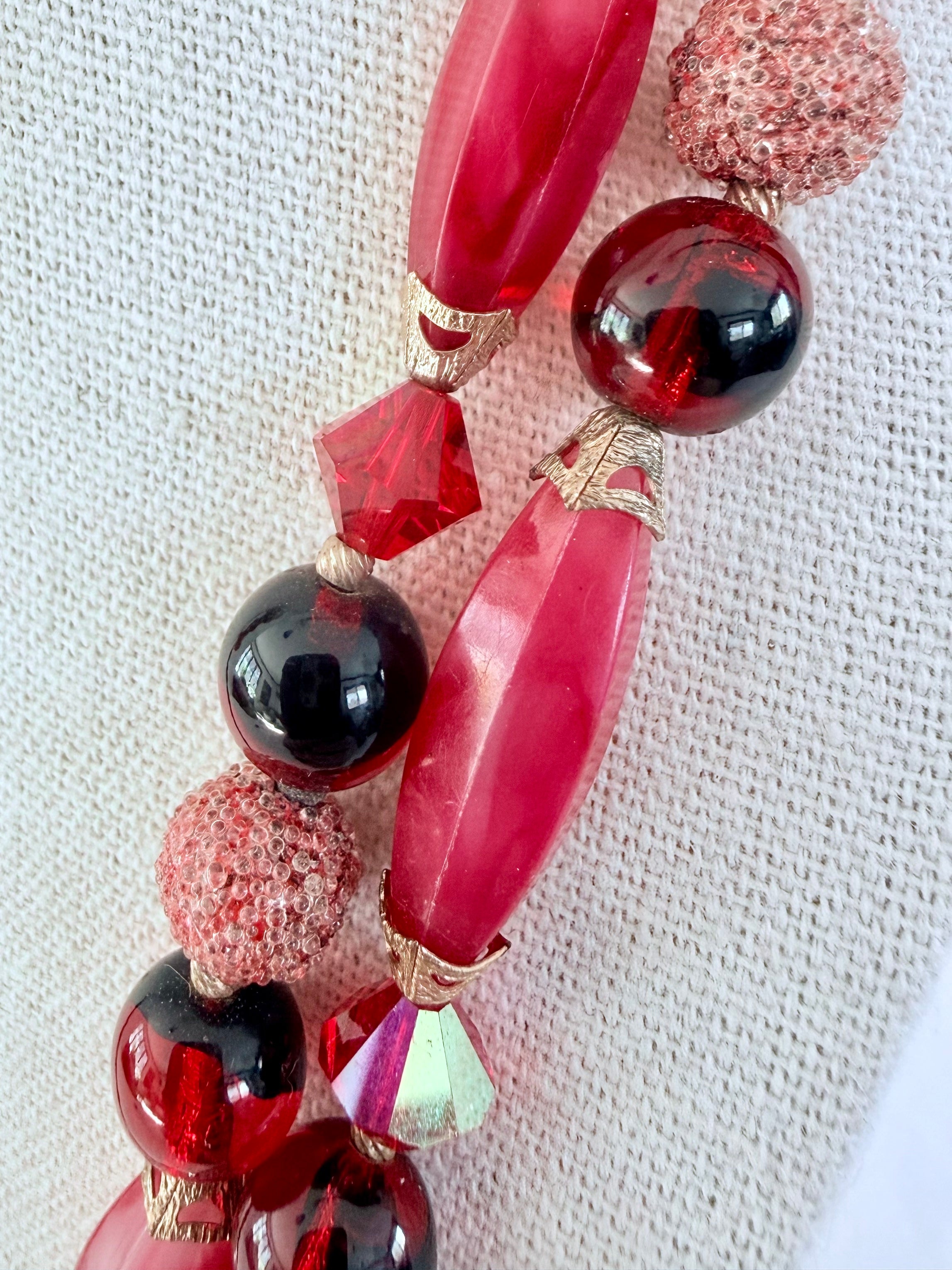 This vintage glass and crystal necklace came with outdated, bauble-heavy clip-on earrings. I created a fresh pair that honors the original's vintage soul while bringing modern wearability to the set.
